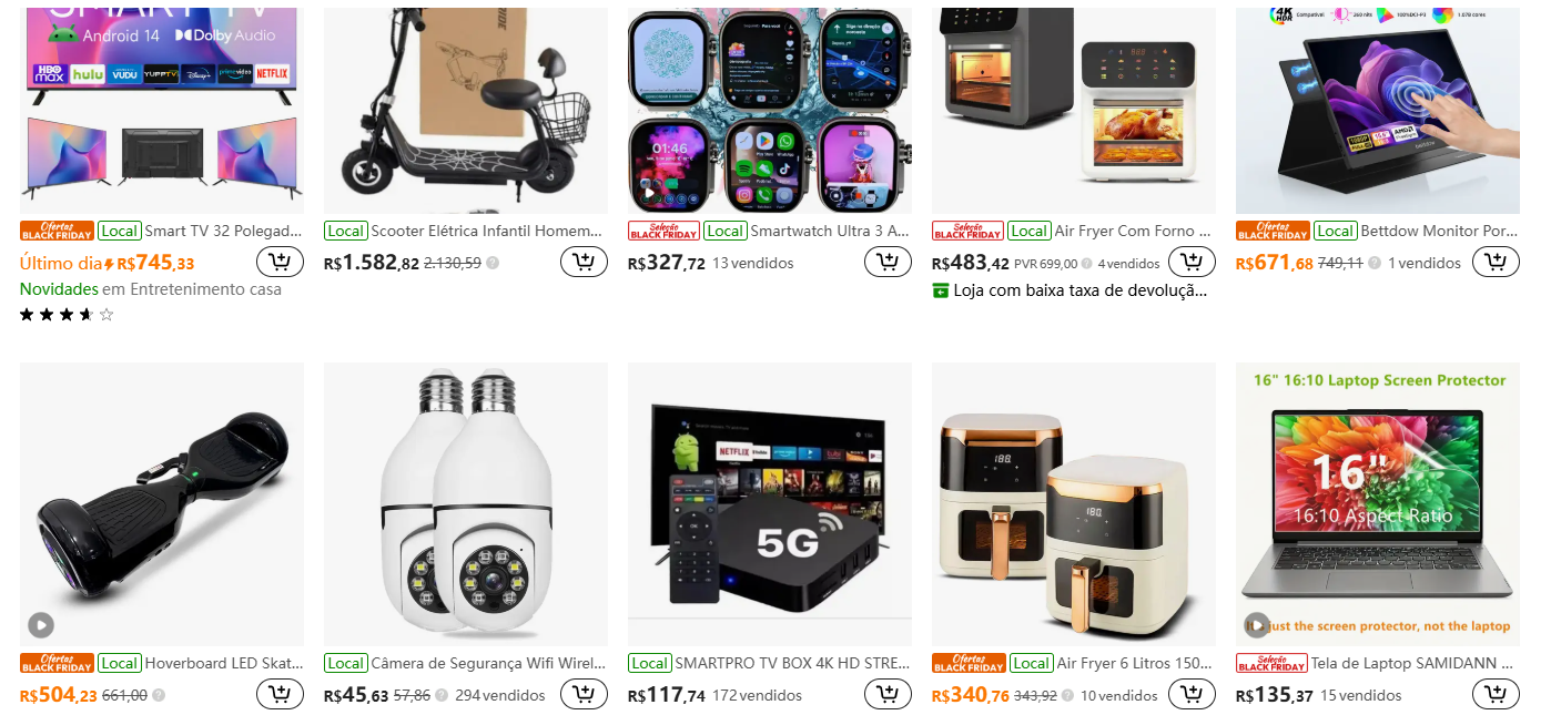 2024 年黑五巴西市场中,家用电器以 15.8% 销量占比登顶品类榜首,同比增长 4%,其爆发源于巴西家庭品质升级需求及跨境商家的供应链优化与折扣力度。细分单品里,Shopee 平台电炸锅最畅销,平均每分钟售出 34 个;空气净化与通风设备同比激增 66.1%,占总销量 6.3%,反映消费者对居住健康的重视。